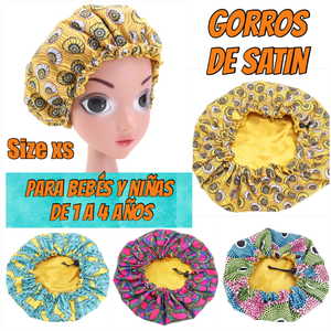 Gorros de Satin para Bebés y Niñas de 1 año a 4 años cabello corto